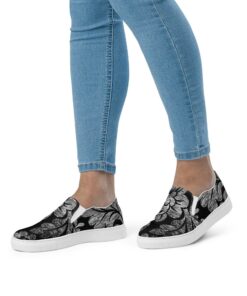 Black Magnified Damask Design Women’s Slip-On FU7